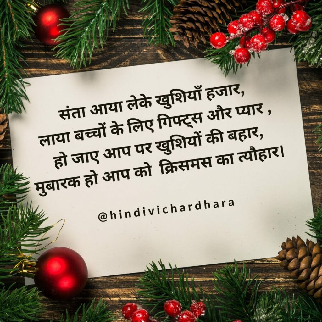 हम आपके लिए 25 दिसम्बर पर शायरी और मेसेज हर साल लाएंगे। अभी हमने आपके लिए बेहतरीन २5 क्रिसमस शायरी लिखी है जो आप अपने दोस्तों , परिवार और जहाँ आपका दिल करे शेयर कर सकते है। अगर आपको हमारी शायरी अच्छी लगी तो कमेंट करके ज़रूर बताना !